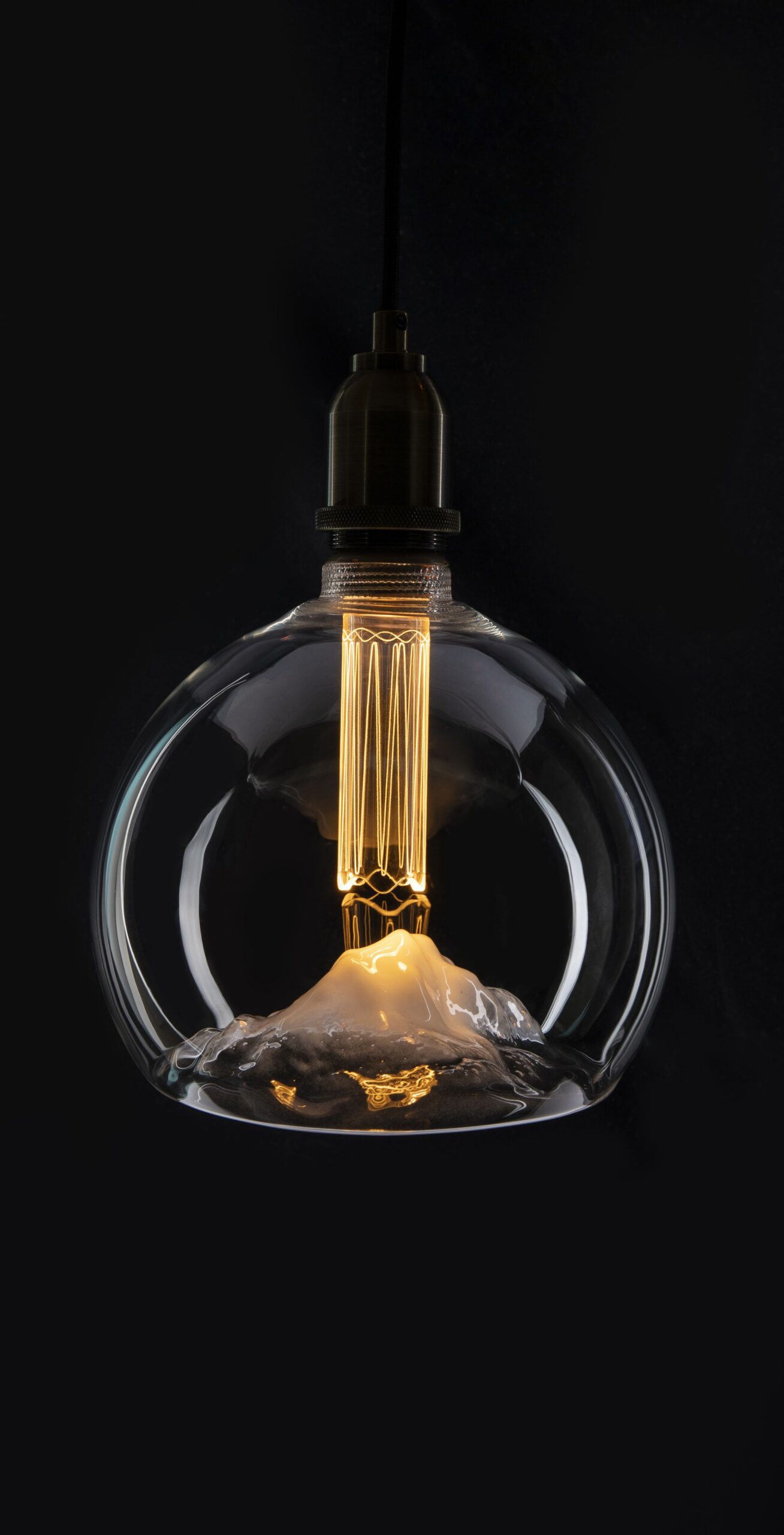 Enhance your space with the Lava Melt LED Filament Bulb, a striking fusion of style and function. Inspired by the rugged beauty of mountains, this unique bulb features a molten, lava-like design at the base, making it a bold statement piece in any room.