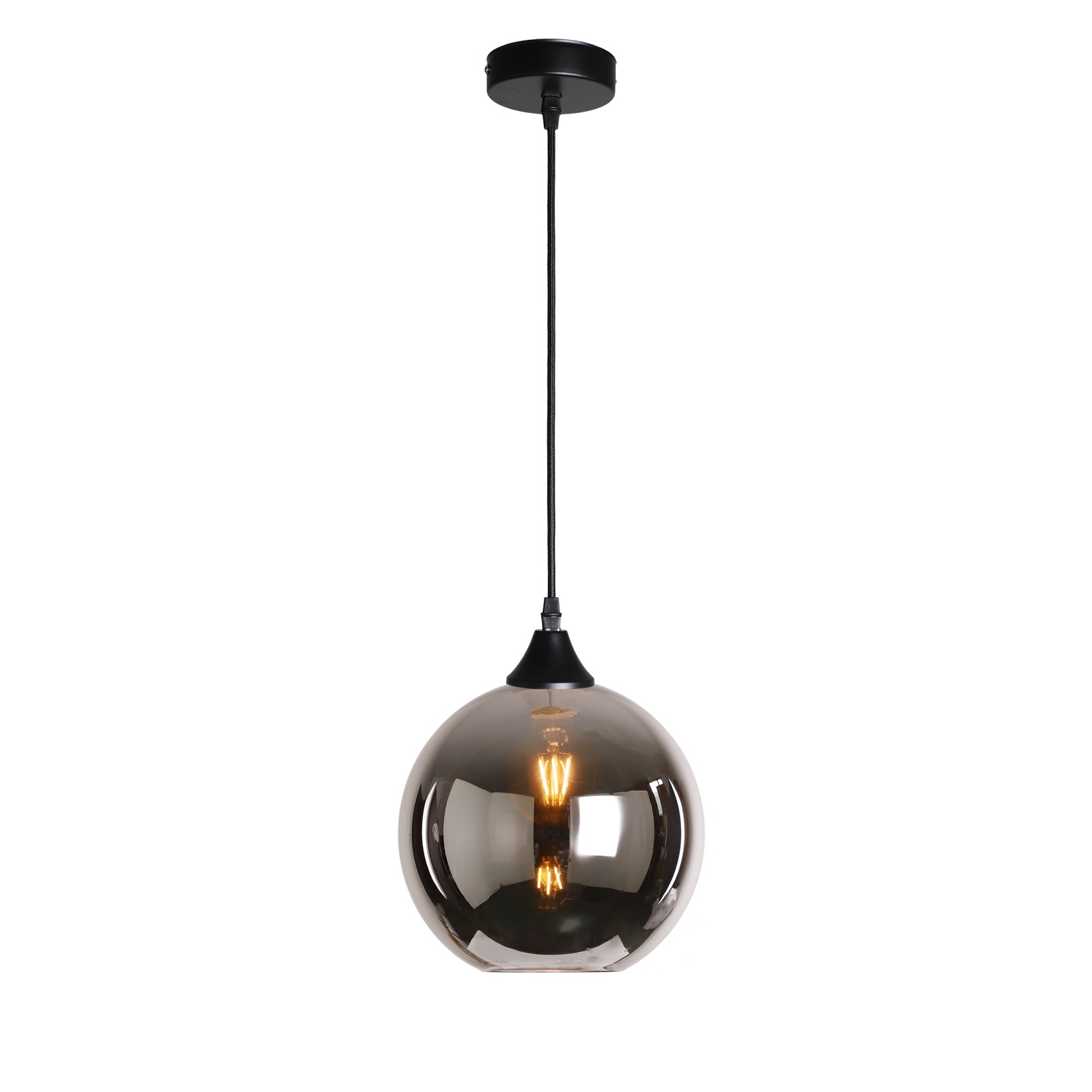 1x light silver braided cable complete with silver ceiling plate and lamp holder with your choice of glass shade