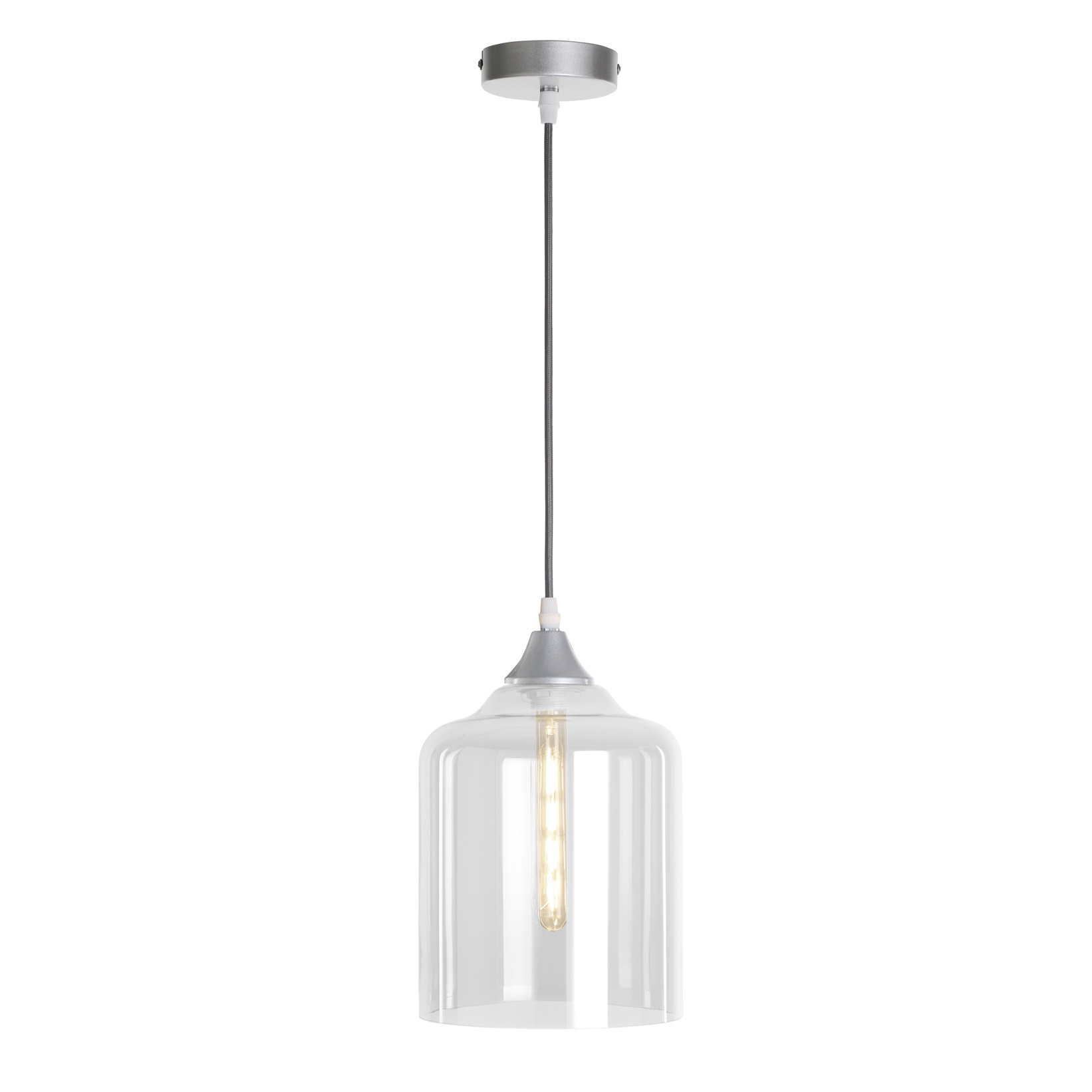 1x light white braided cable complete with white ceiling plate and lamp holder with your choice of glass shade