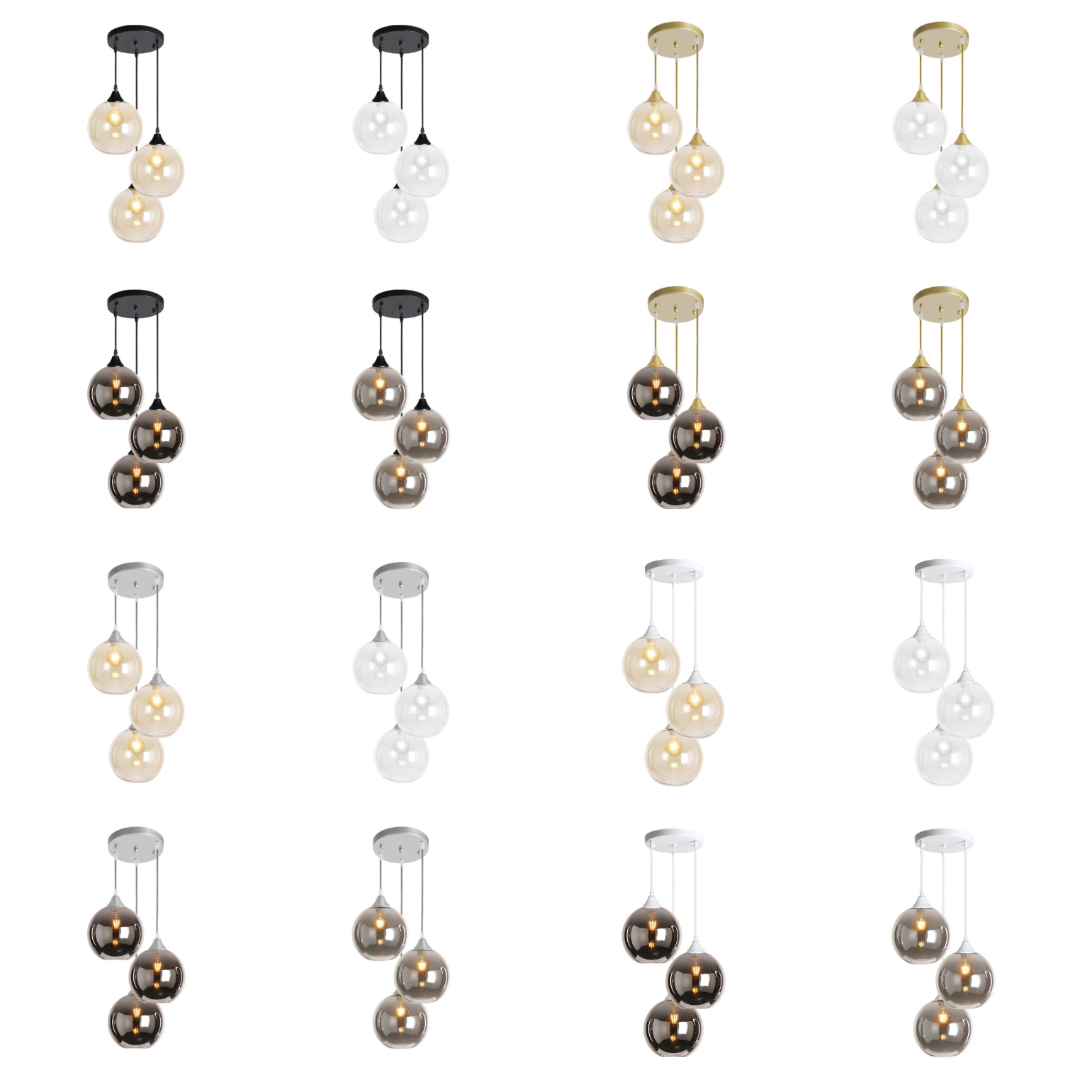 3 light in your choice of colour, braided cable, ceiling plate and lamp holder with choice of glass shade