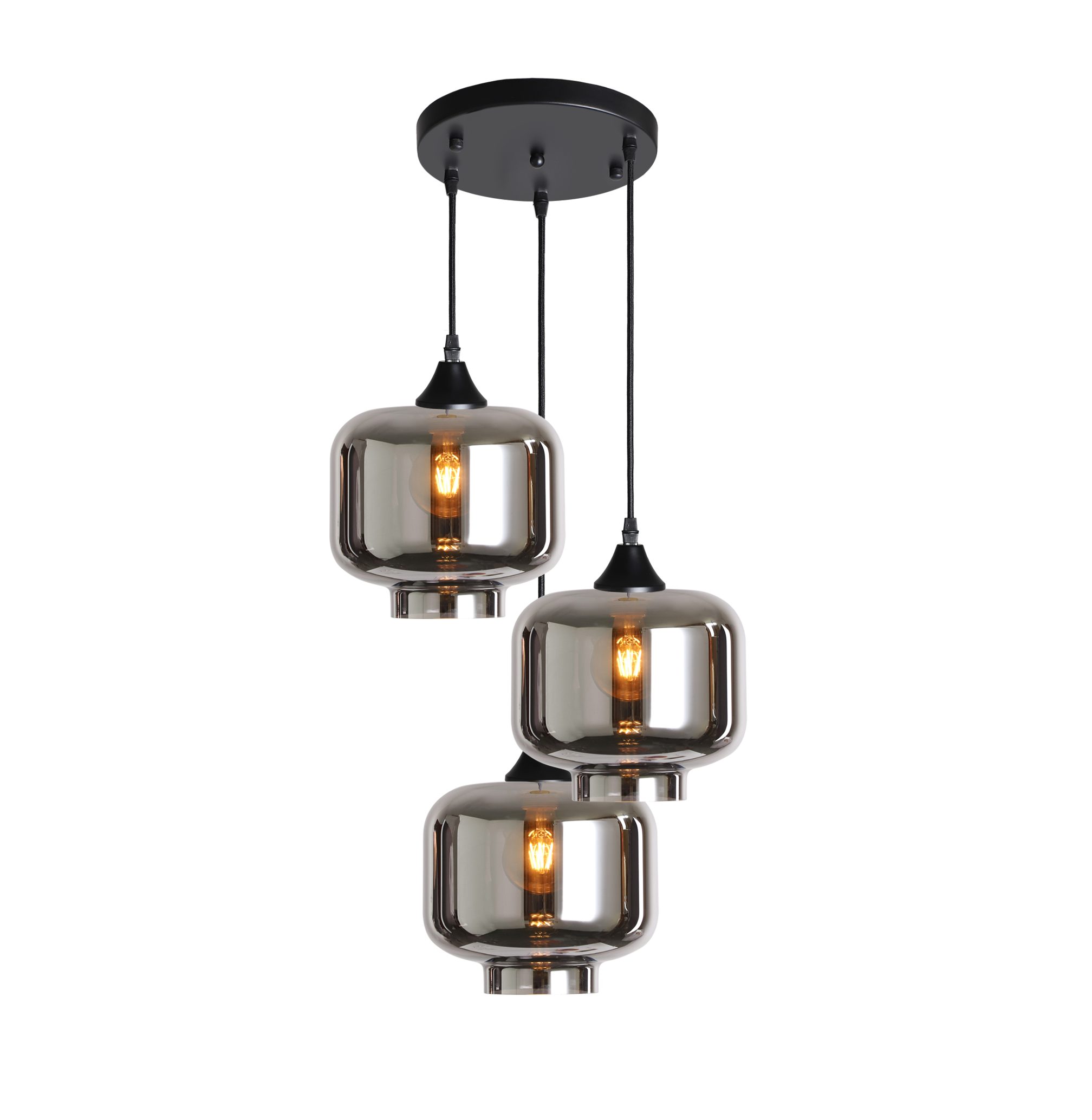 3 light black braided cable complete with black ceiling plate and lamp holder with your choice of glass shade