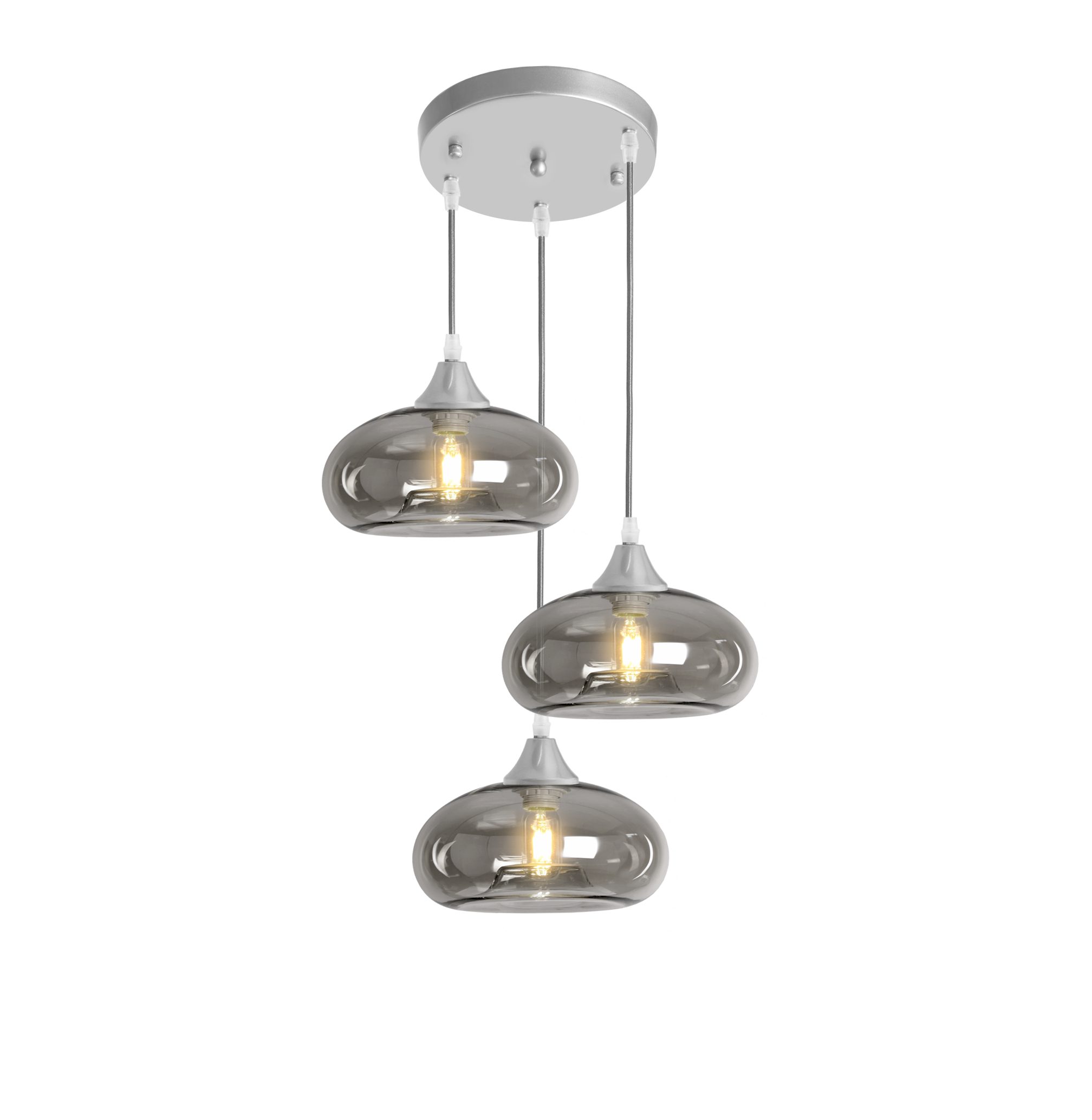 3 light Silver braided cable complete with silver ceiling plate and lamp holder with your choice of glass shade
