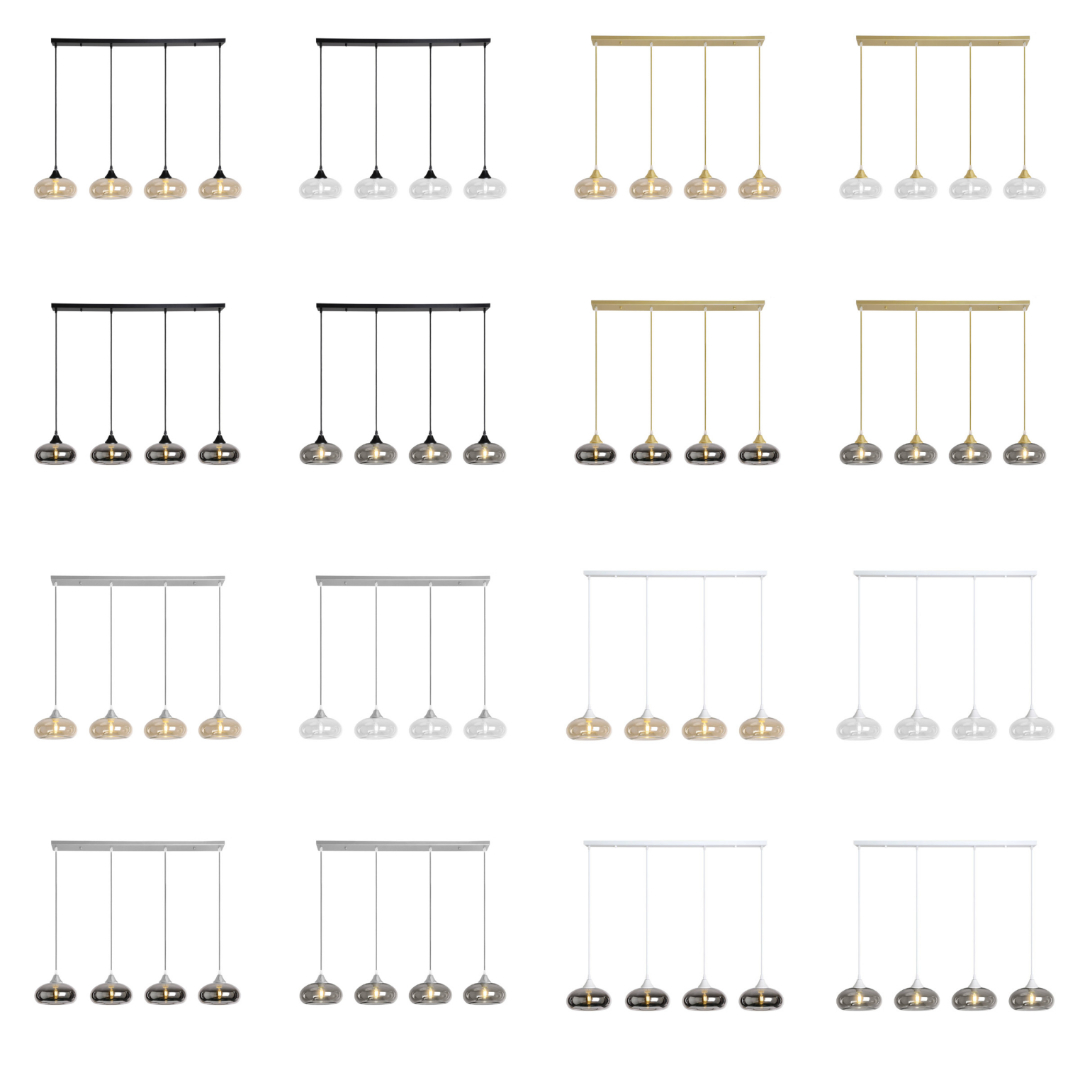 4 light bar with braided cable complete with ceiling plate and lamp holder with your choice of glass shade