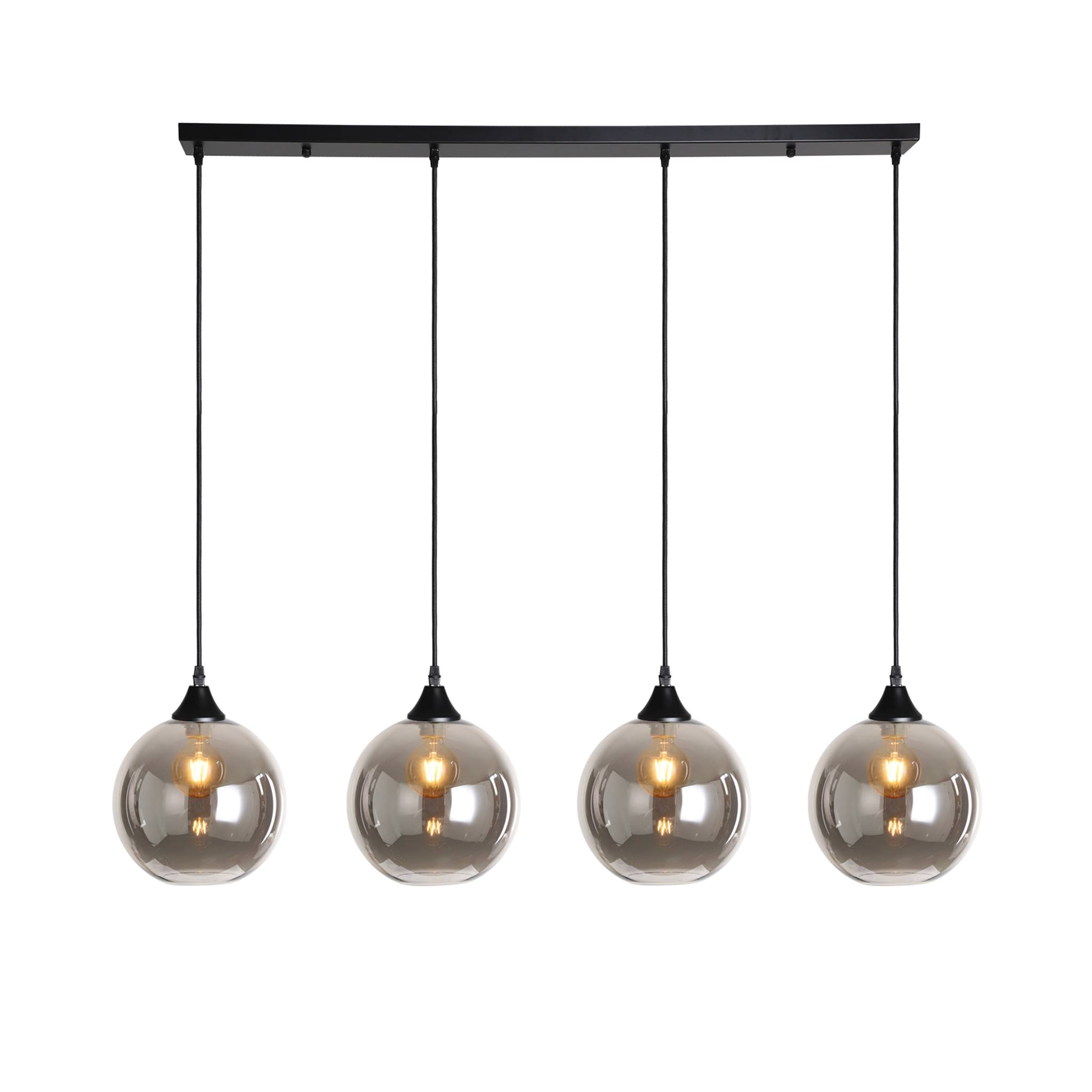 4 light bar with black braided cable complete with black ceiling plate and lamp holder with your choice of glass shade