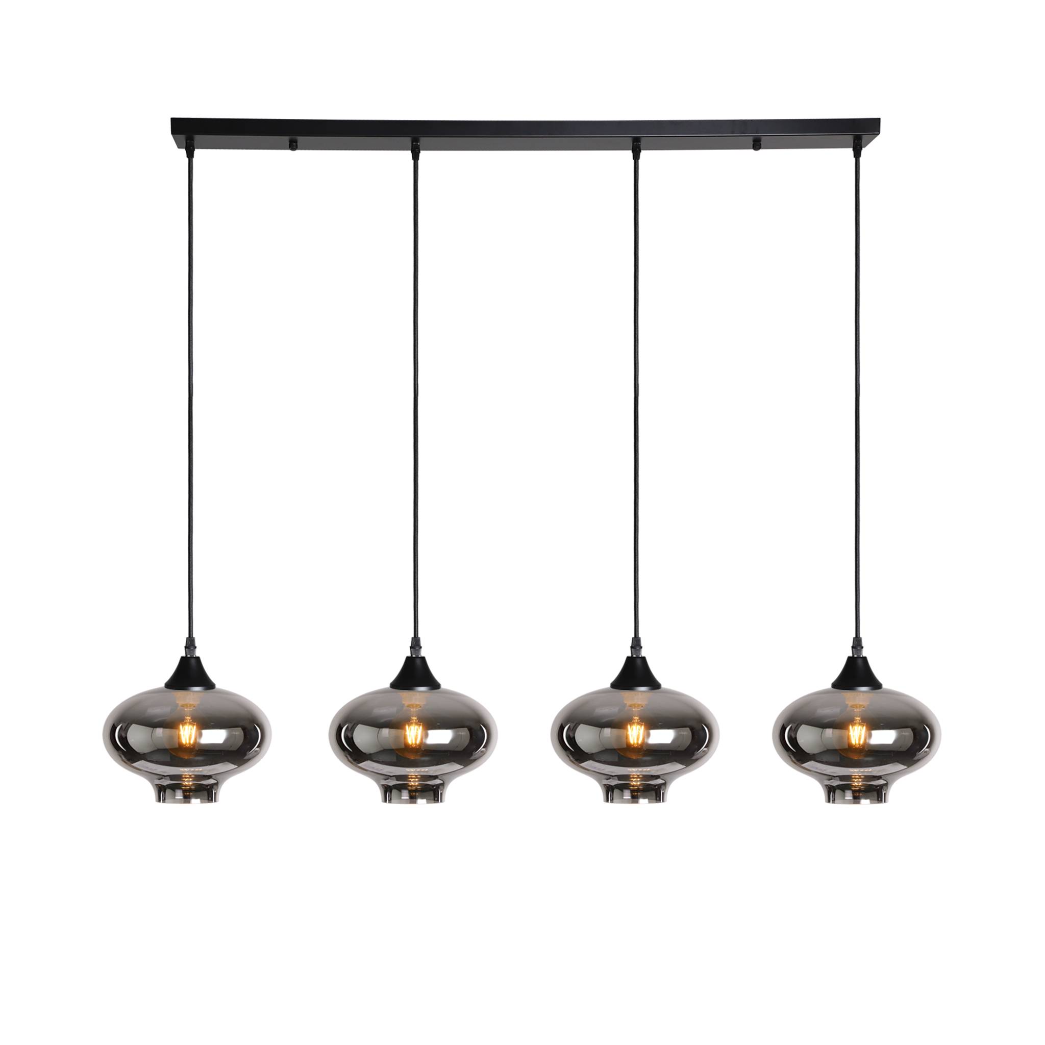 4 light bar with black braided cable complete with black ceiling plate and lamp holder with your choice of glass shade