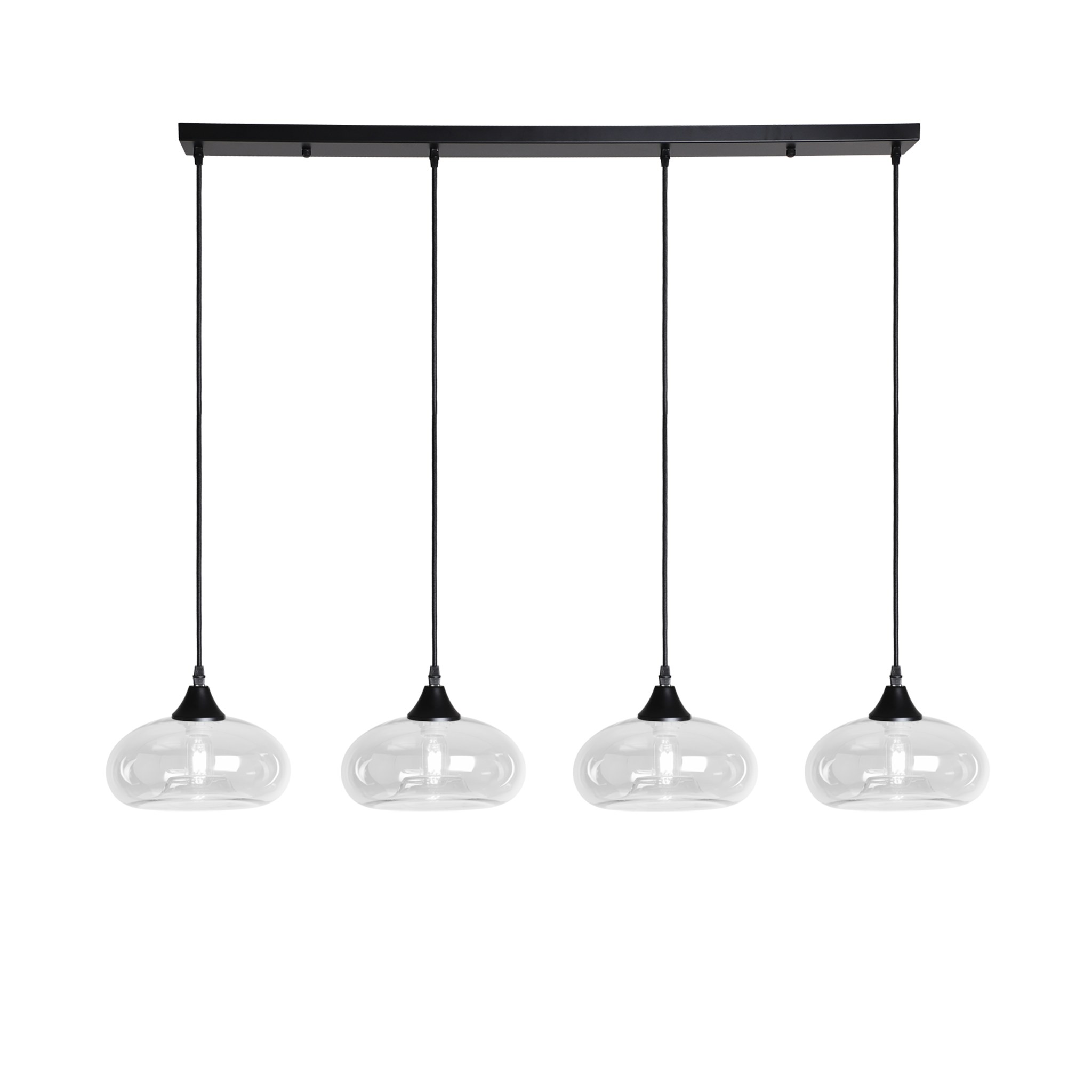 4 light bar with black braided cable complete with black ceiling plate and lamp holder with your choice of glass shade