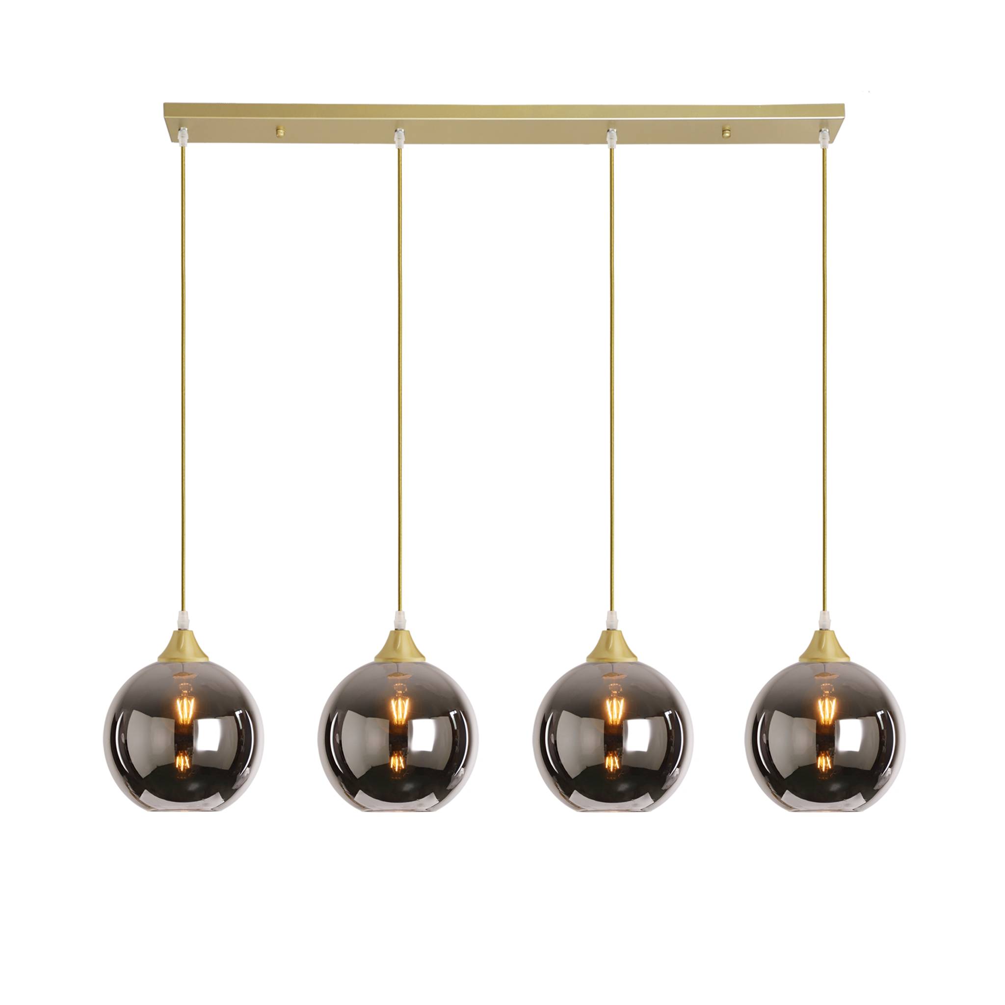 4 light bar with gold braided cable complete with gold ceiling plate and lamp holder with your choice of glass shade