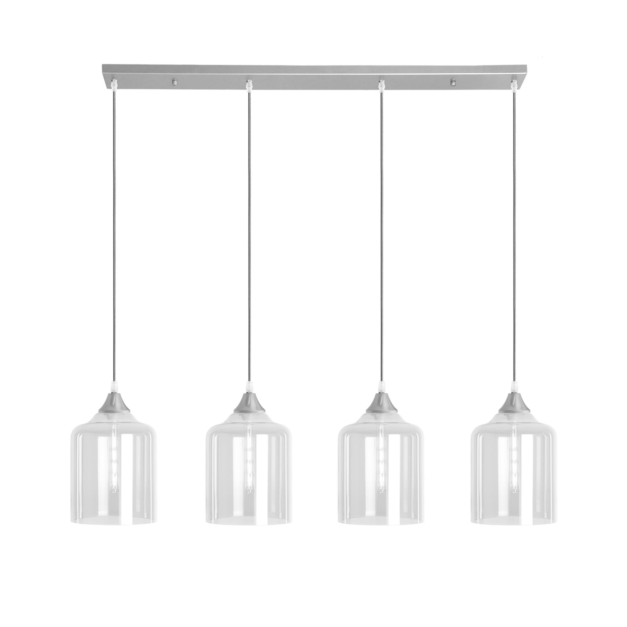 4 light bar with silver braided cable complete with silver ceiling plate and lamp holder with your choice of glass shade