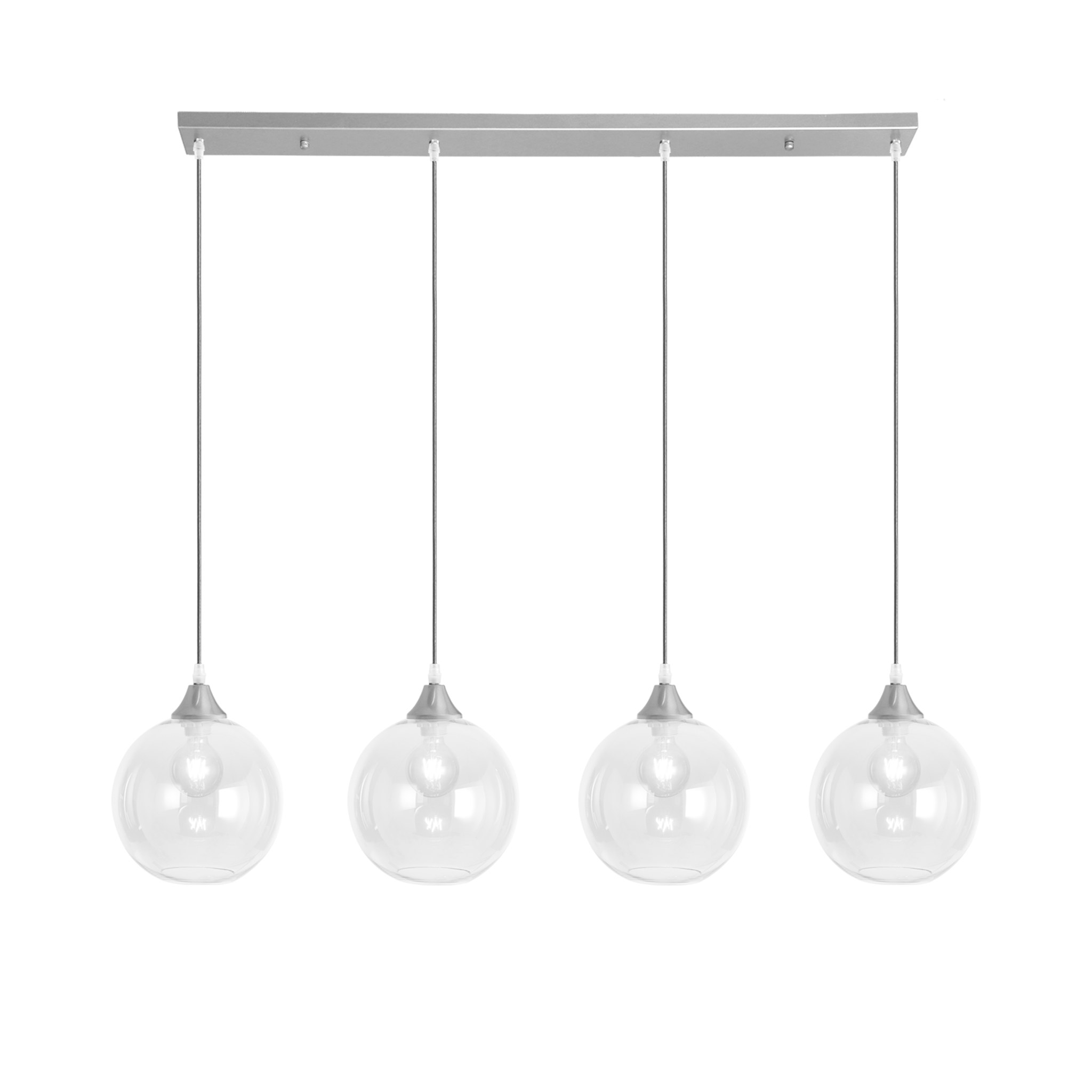 4 light bar with silver braided cable complete with silver ceiling plate and lamp holder with your choice of glass shade
