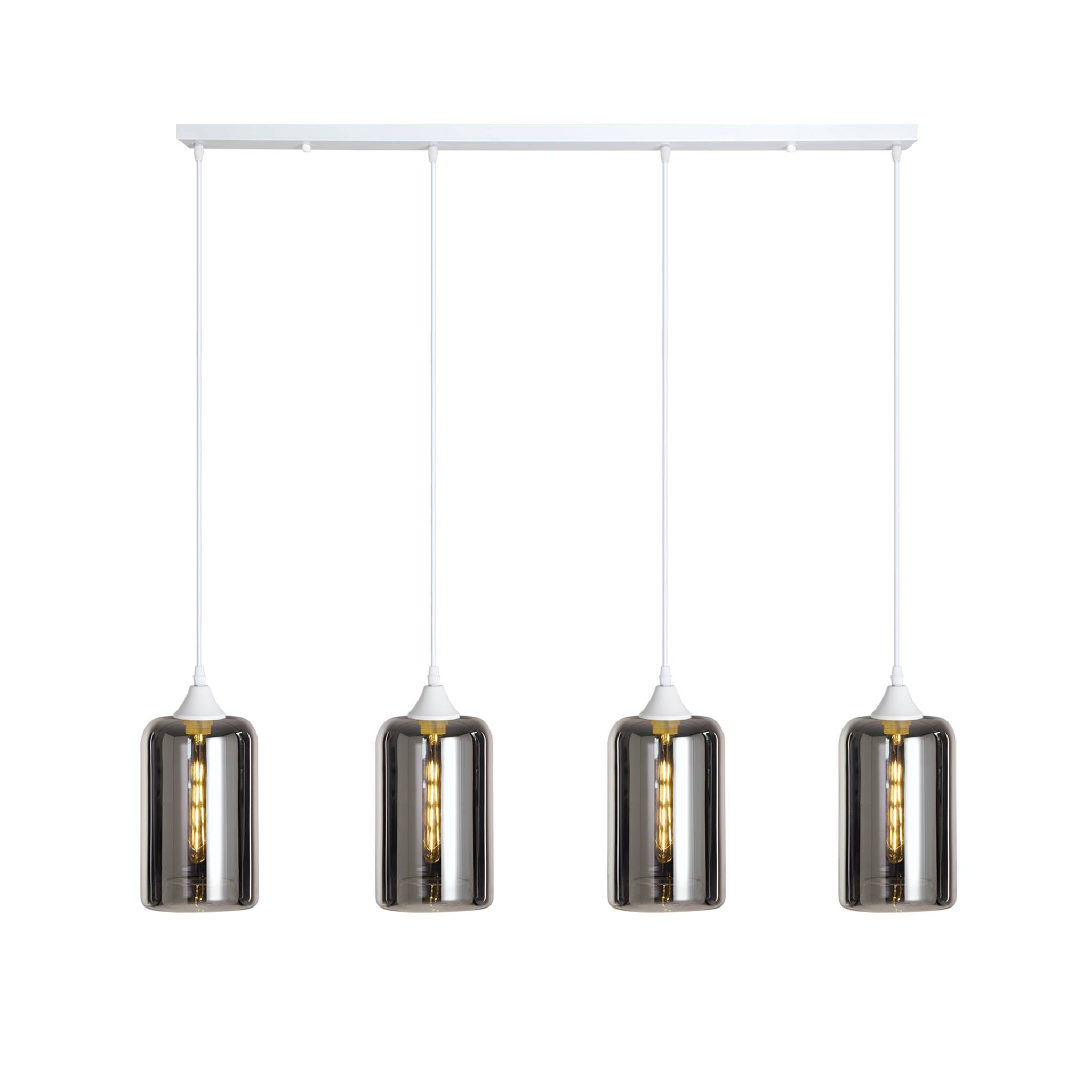 4 light bar with white braided cable complete with white ceiling plate and lamp holder with your choice of glass shade