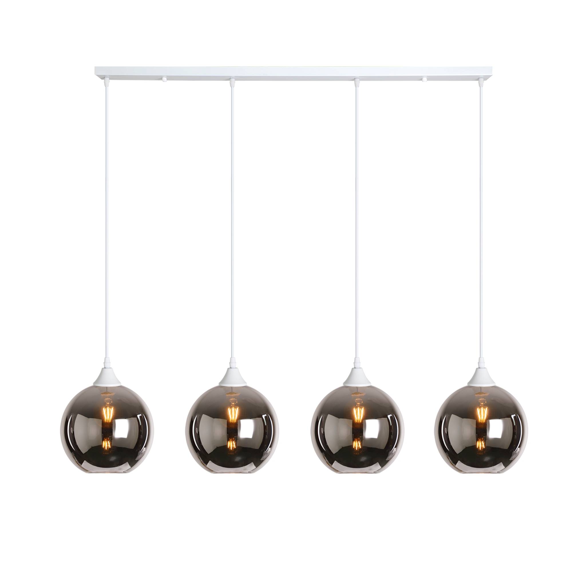 4 light bar with white braided cable complete with white ceiling plate and lamp holder with your choice of glass shade