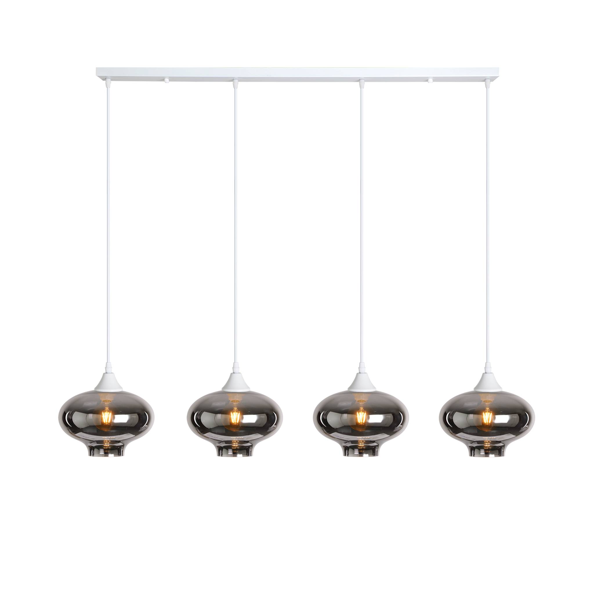 4 light bar with white braided cable complete with white ceiling plate and lamp holder with your choice of glass shade