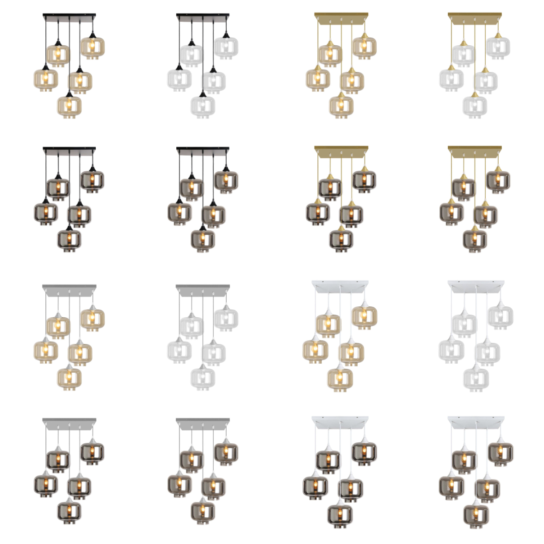 5 light ceiling pendant with braided cable complete with ceiling plate and lamp holder with your choice of glass shade