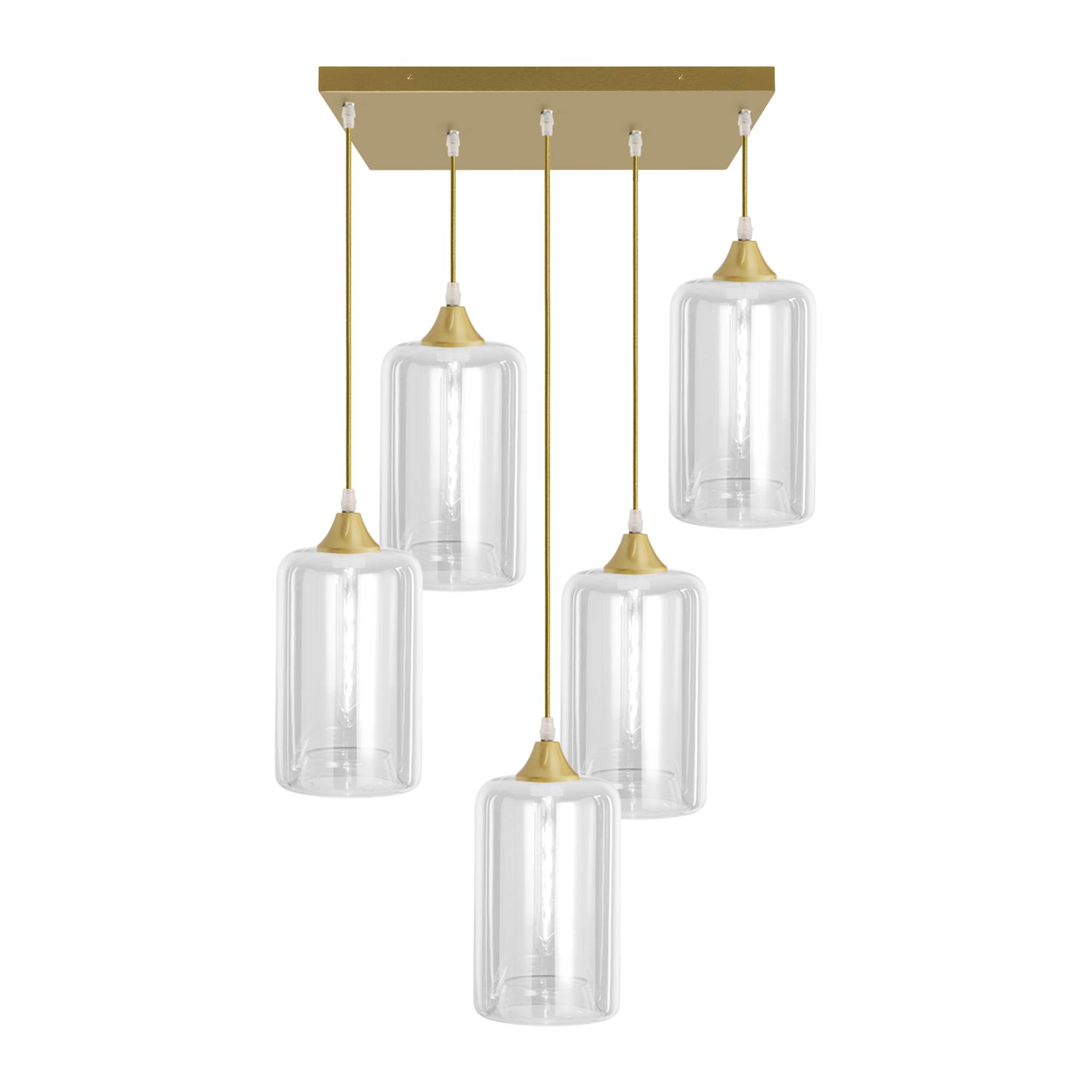 5 light ceiling pendant with gold braided cable complete with gold ceiling plate and lamp holder with your choice of glass shade