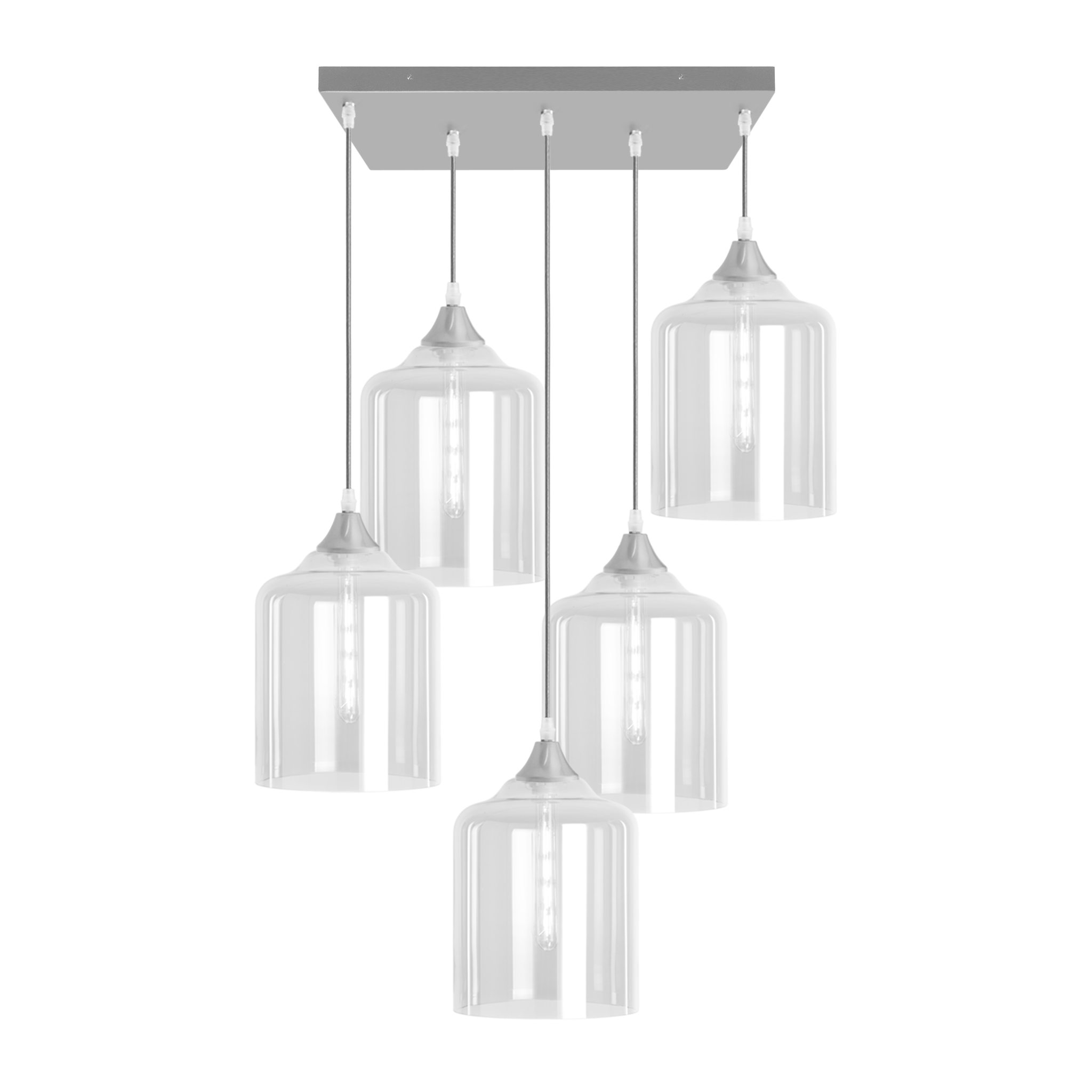 5 light ceiling pendant with silver braided cable complete with silver ceiling plate and lamp holder with your choice of glass shade