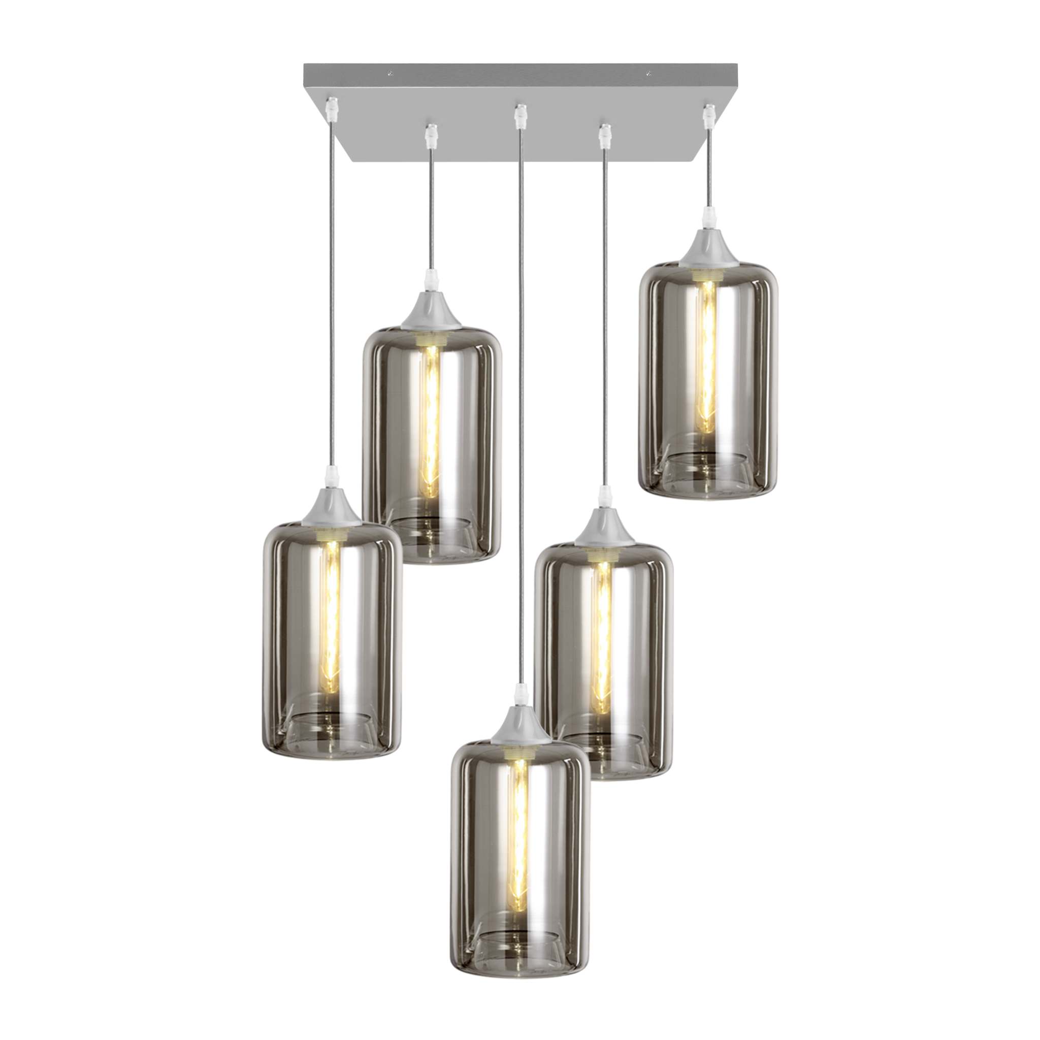 5 light ceiling pendant with silver braided cable complete with silver ceiling plate and lamp holder with your choice of glass shade