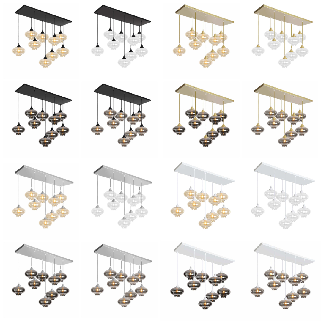 9 light pendant with braided cable complete with ceiling plate and lamp holder with your choice of glass shade