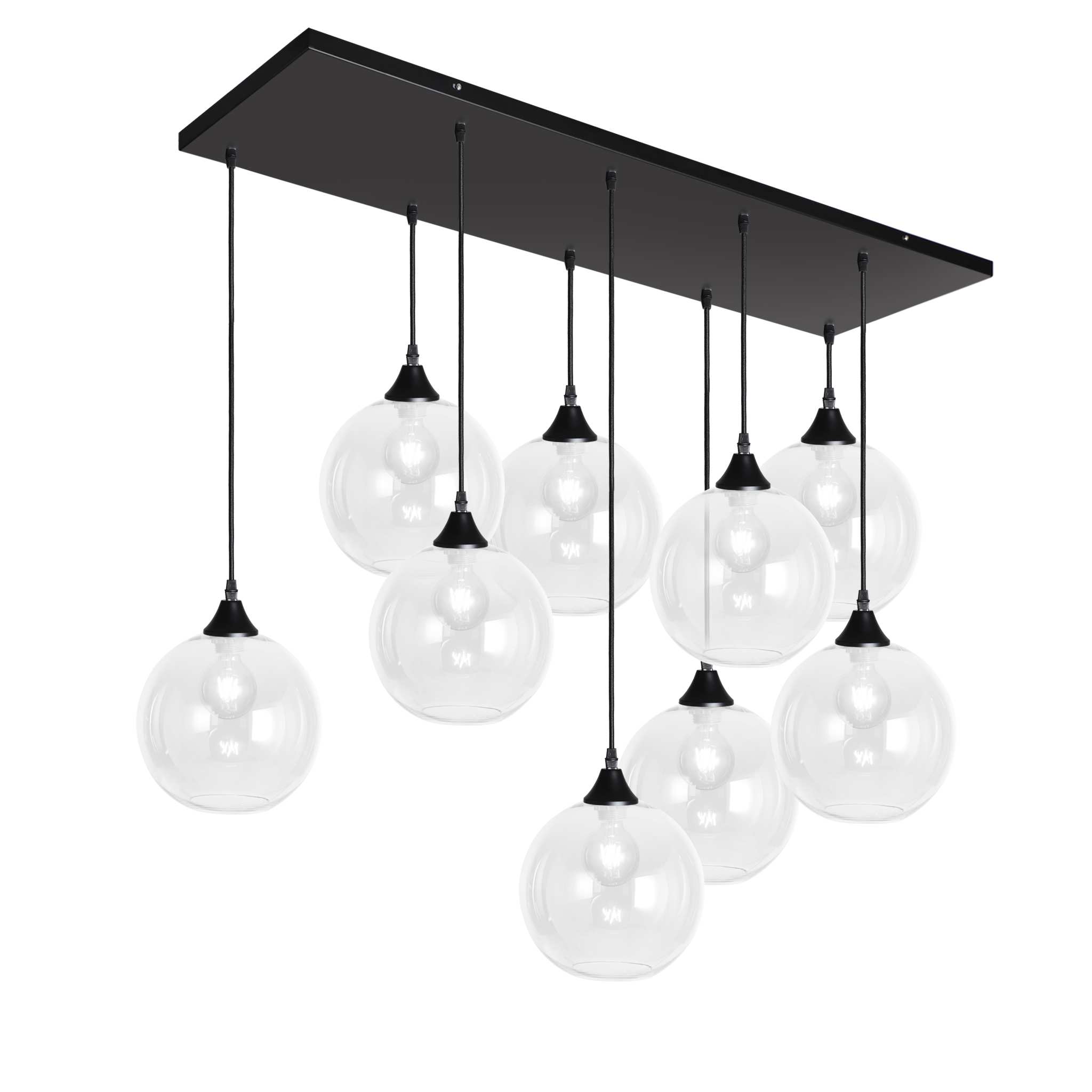 9 light pendant with black braided cable complete with black ceiling plate and lamp holder with your choice of glass shade