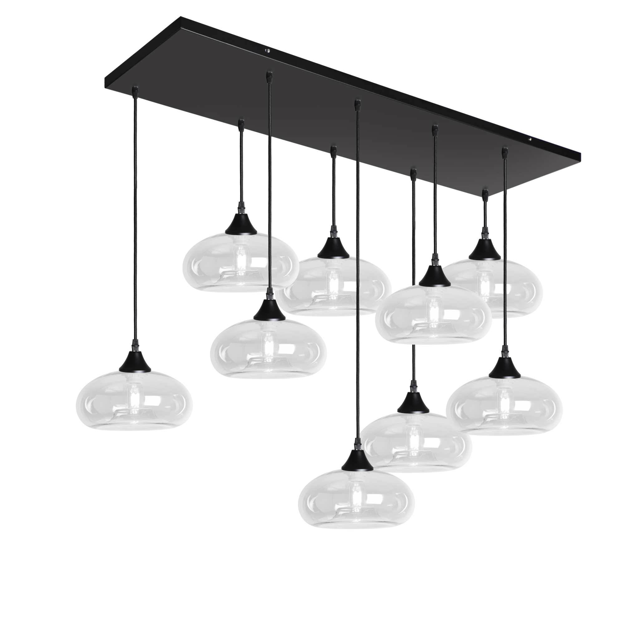 9 light pendant with black braided cable complete with black ceiling plate and lamp holder with your choice of glass shade