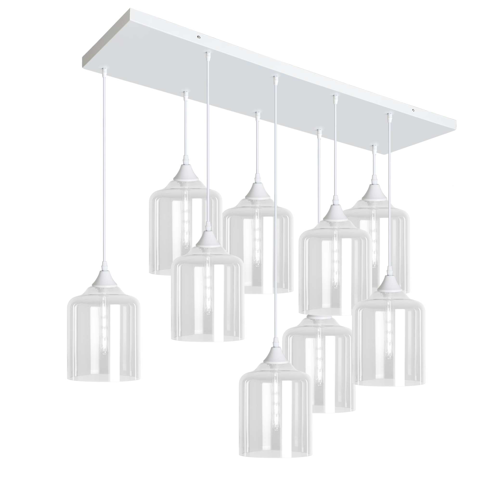 9 light pendant with silver braided cable complete with silver ceiling plate and lamp holder with your choice of glass shade