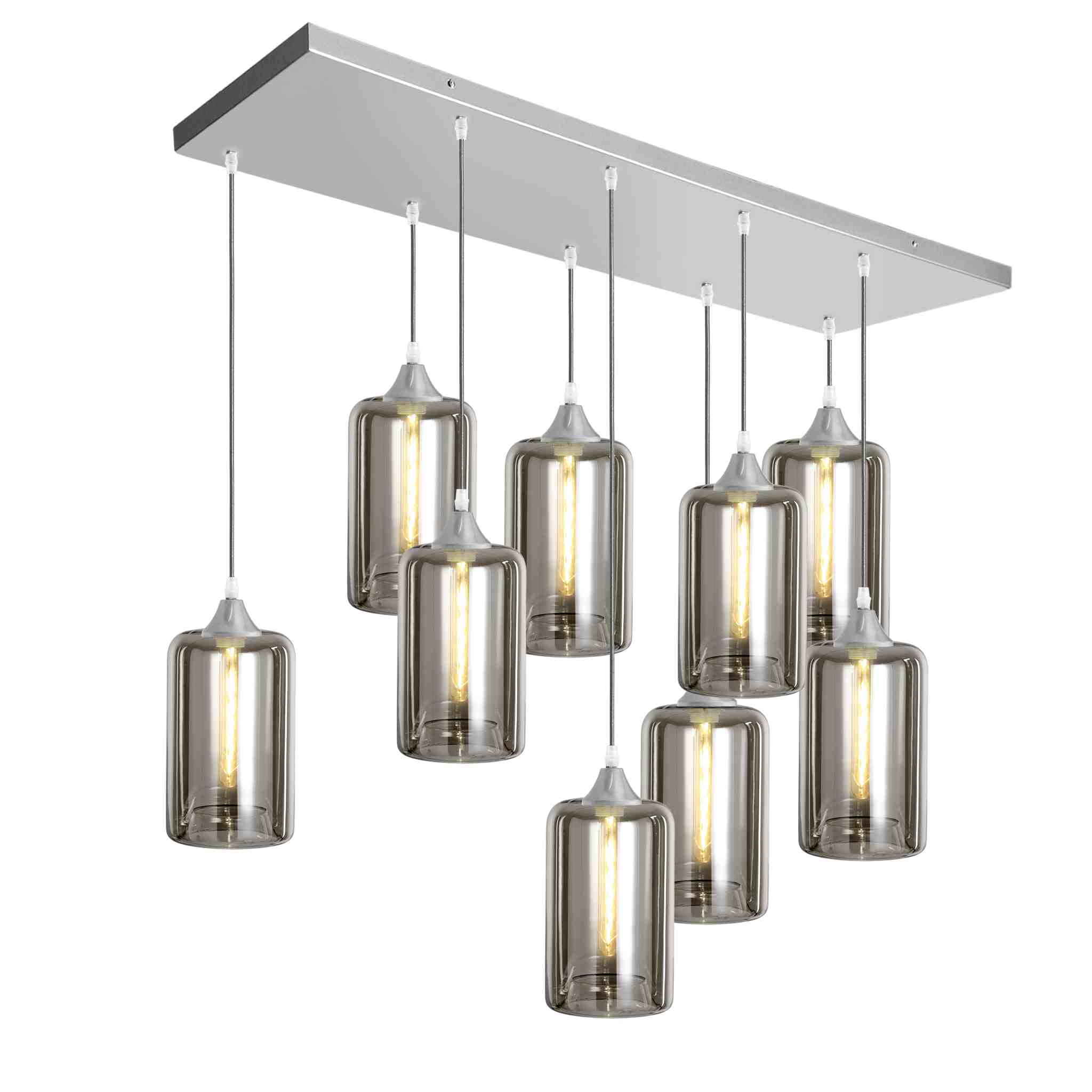 9 light pendant with silver braided cable complete with silver ceiling plate and lamp holder with choice of glass shade