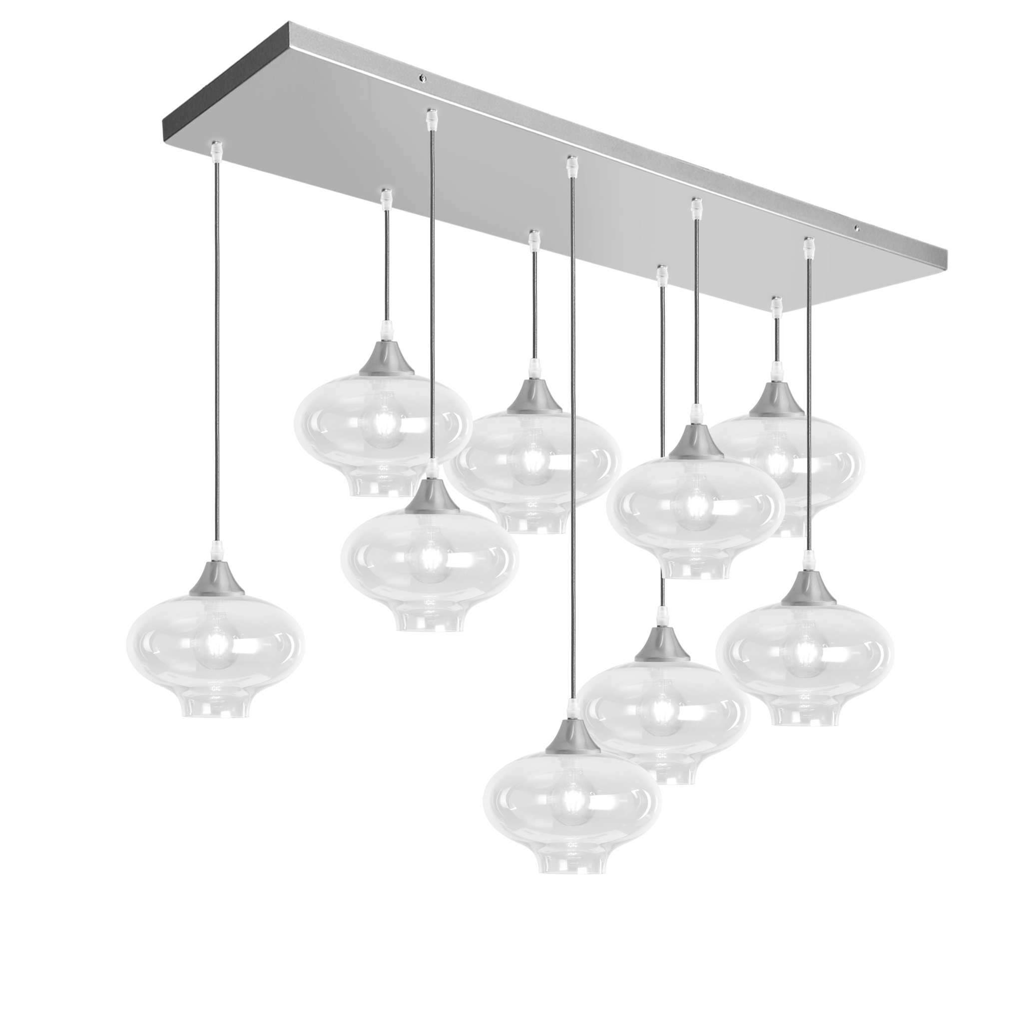 9 light pendant with silver braided cable complete with silver ceiling plate and lamp holder with your choice of glass shade
