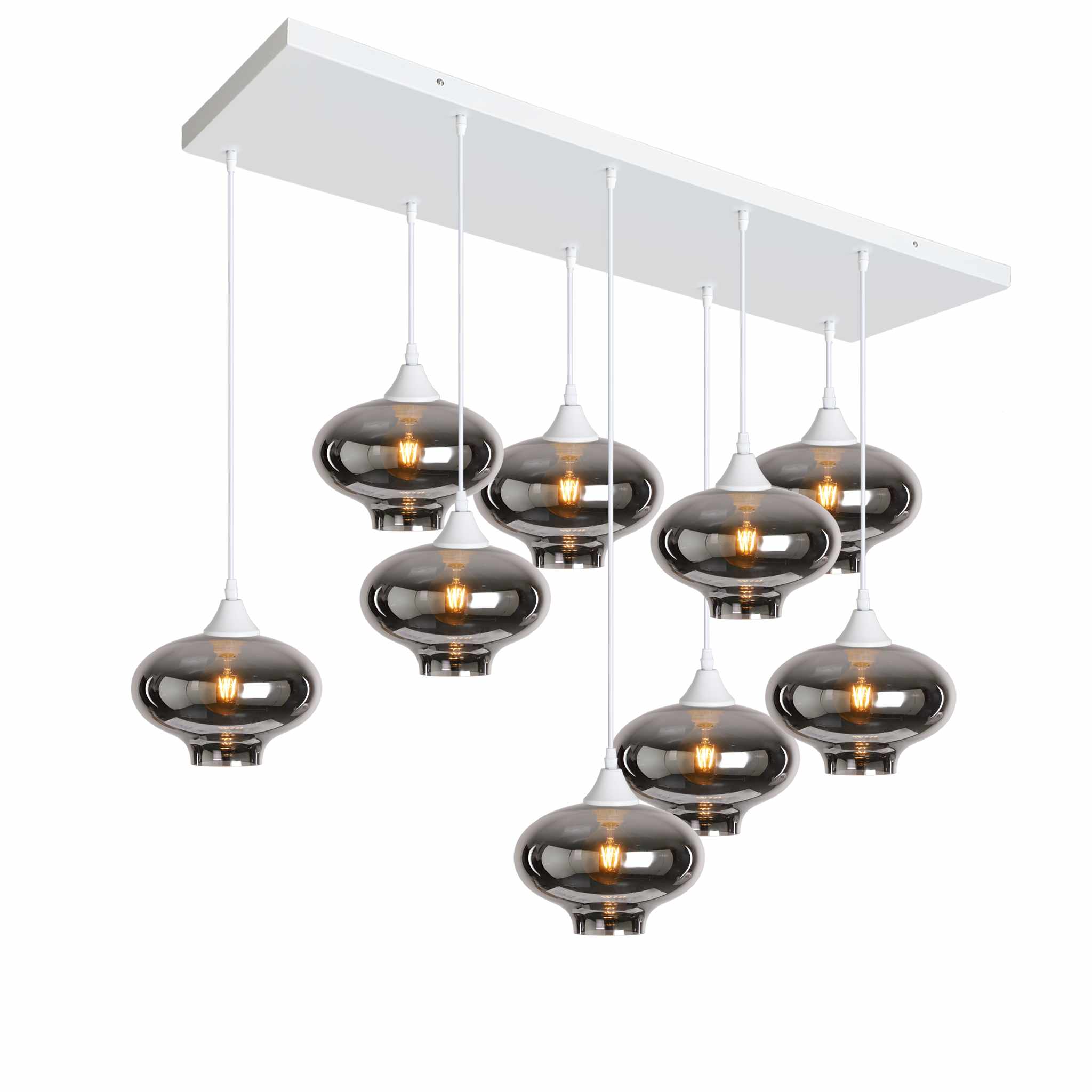 9 light pendant with white braided cable complete with white ceiling plate and lamp holder with your choice of glass shade